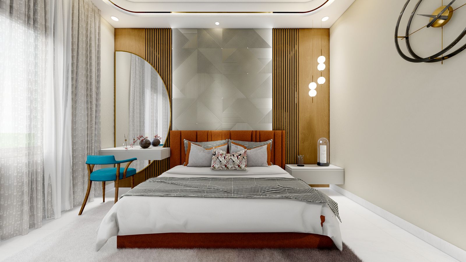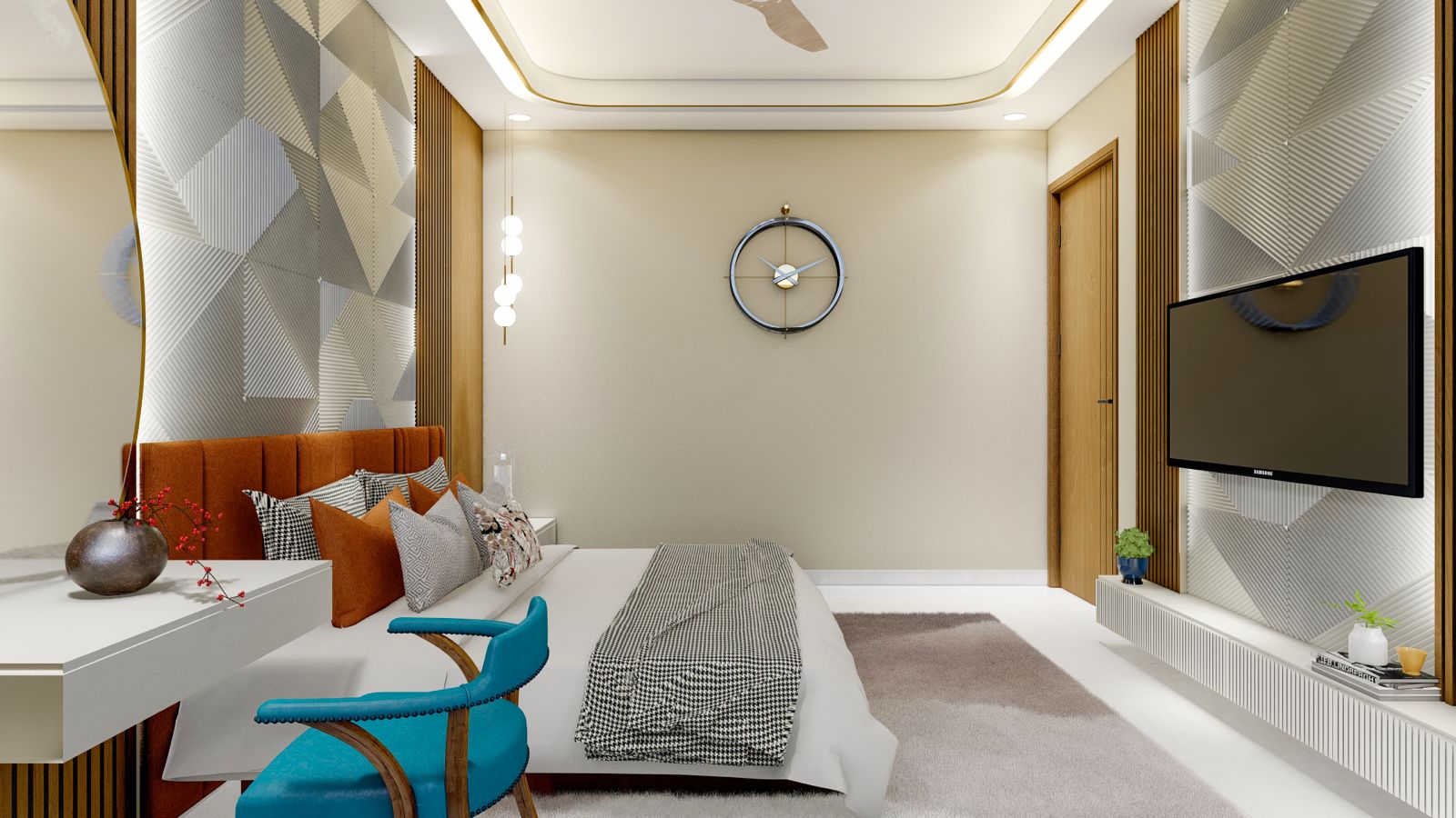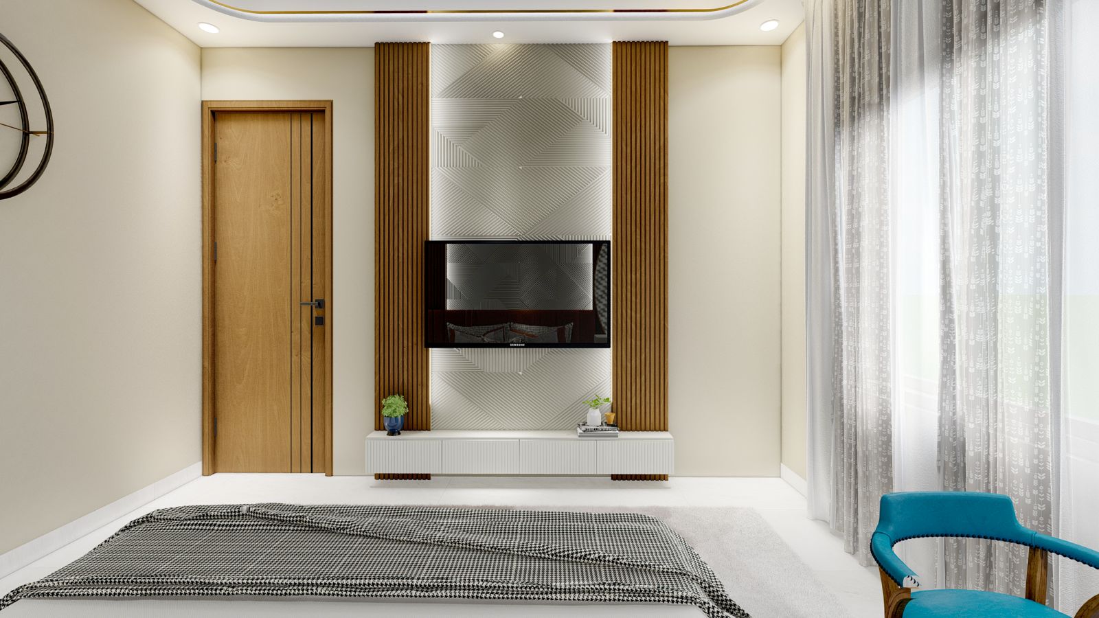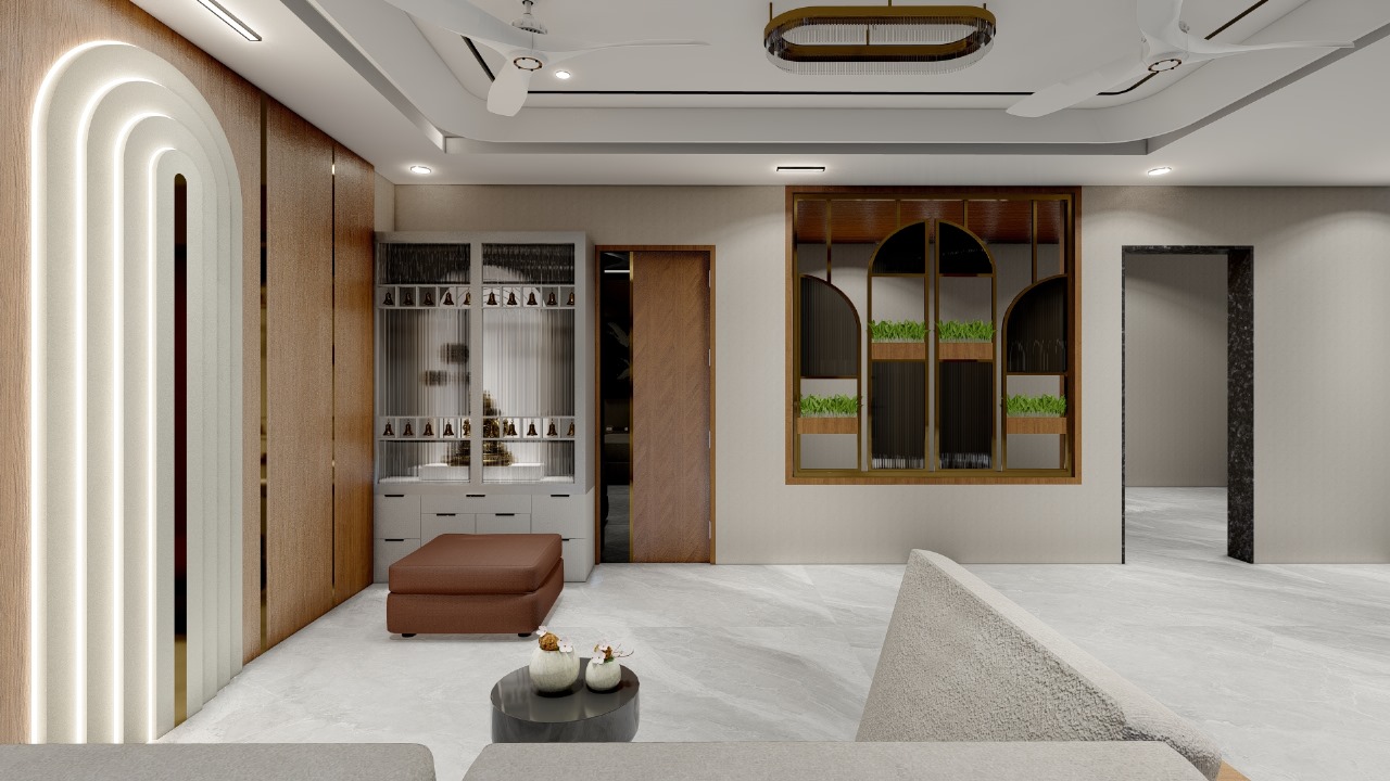 Satishji’s Bungalow is a thoughtfully crafted 3BHK residence located in the quiet village of Jethana, near Sagwara. The interior concept revolves around clean lines, earthy textures, and natural light — creating a home that feels grounded, serene, and highly livable.